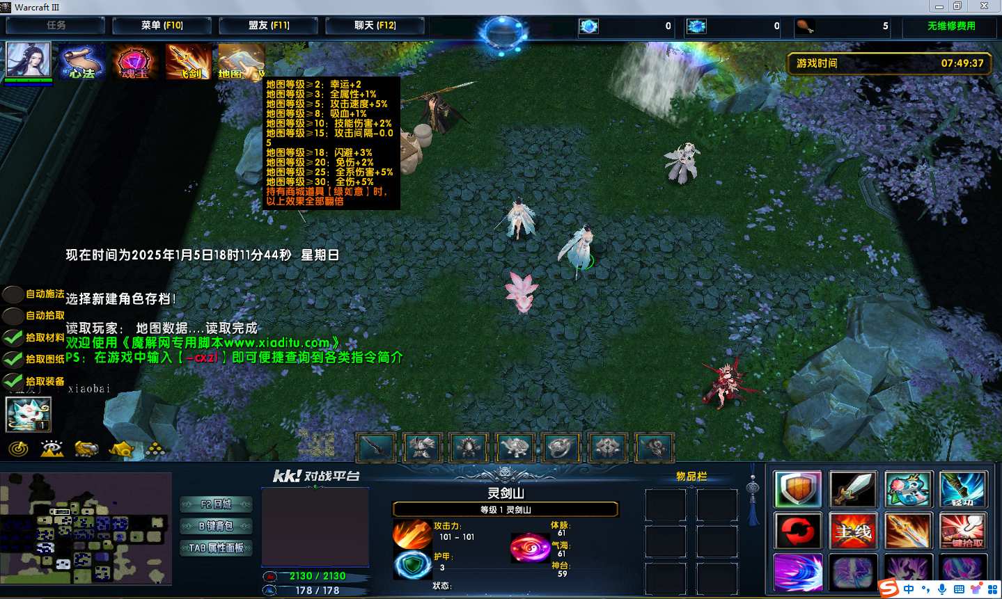 | 技能菜单【光环类技能】 | 自动化菜单【自动加钱木,提升英雄三围】 |