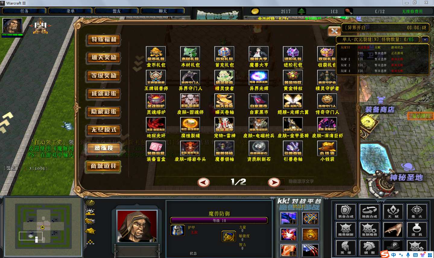 | 技能菜单【光环类技能】 | 自动化菜单【自动加钱木,提升英雄三围】 |