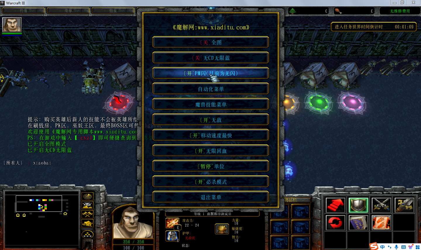 | 技能菜单【光环类技能】 | 自动化菜单【自动加钱木,提升英雄三围】 |