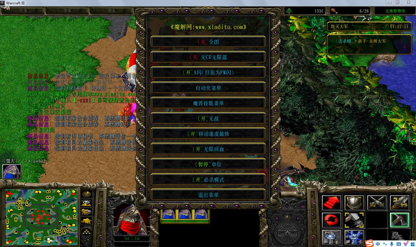 | 技能菜单【光环类技能】 | 自动化菜单【自动加钱木,提升英雄三围】 |