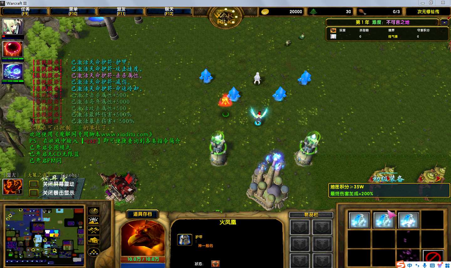 地图名字:次元修仙传v2.5.144地图下载+全商城特权+全存档+隐藏英雄+无CD+指令功能
