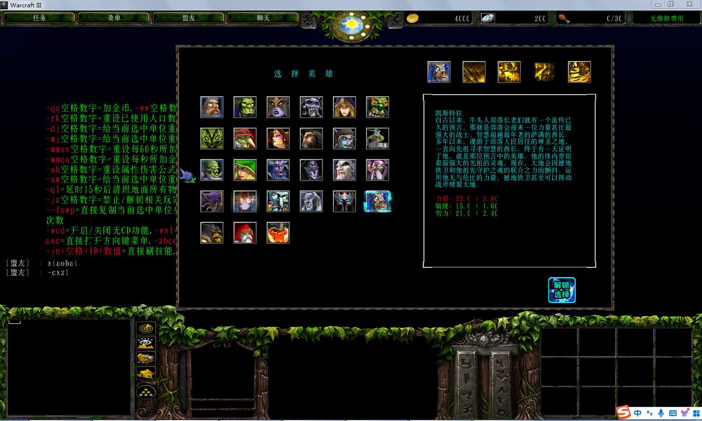 | 技能菜单【光环类技能】 | 自动化菜单【自动加钱木,提升英雄三围】 |