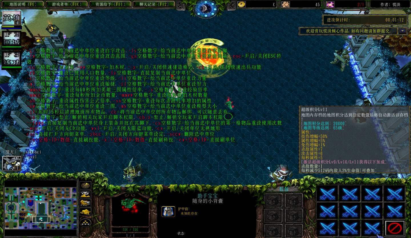 慌神之域1.4.10地图下载+全商城特权+全存档+隐藏英雄+无CD+指令功能: