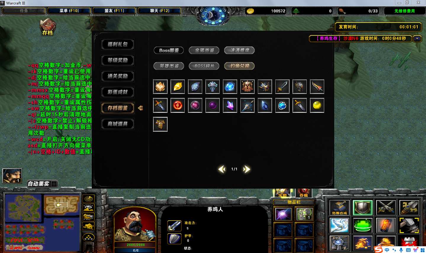 地图名字:养鸡生存1.0.44地图下载+全商城特权+全存档+无CD+指令功能