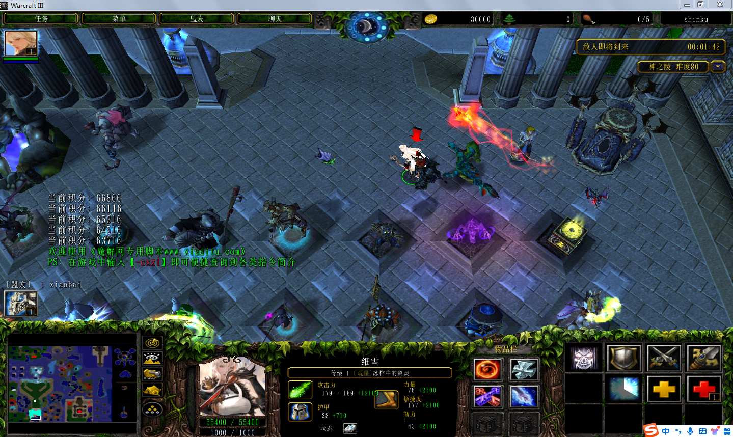 地图名字:神之陵2.2.0地图下载+全商城特权+全存档+隐藏英雄+无CD+指令功能