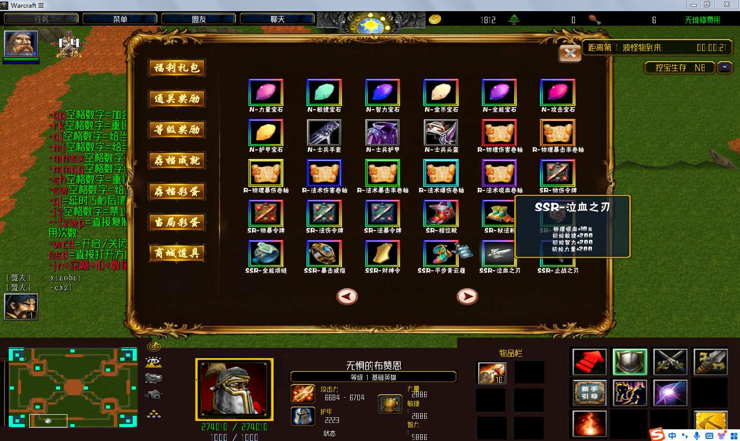 | 技能菜单【光环类技能】 | 自动化菜单【自动加钱木,提升英雄三围】 |