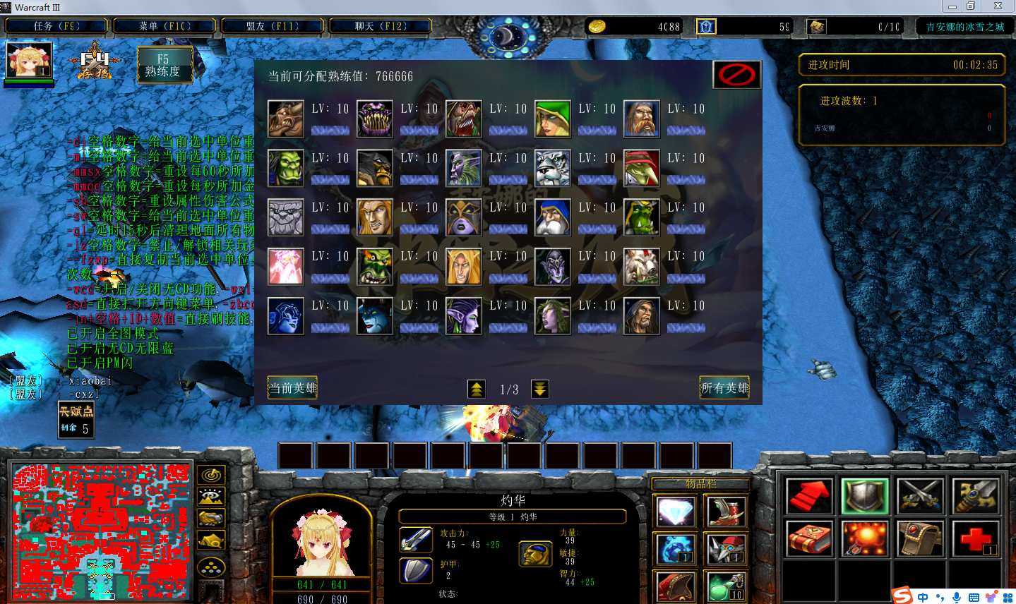 吉安娜的冰雪之城1.8.4地图下载+全商城特权+全存档+隐藏英雄+无CD+指令功能: