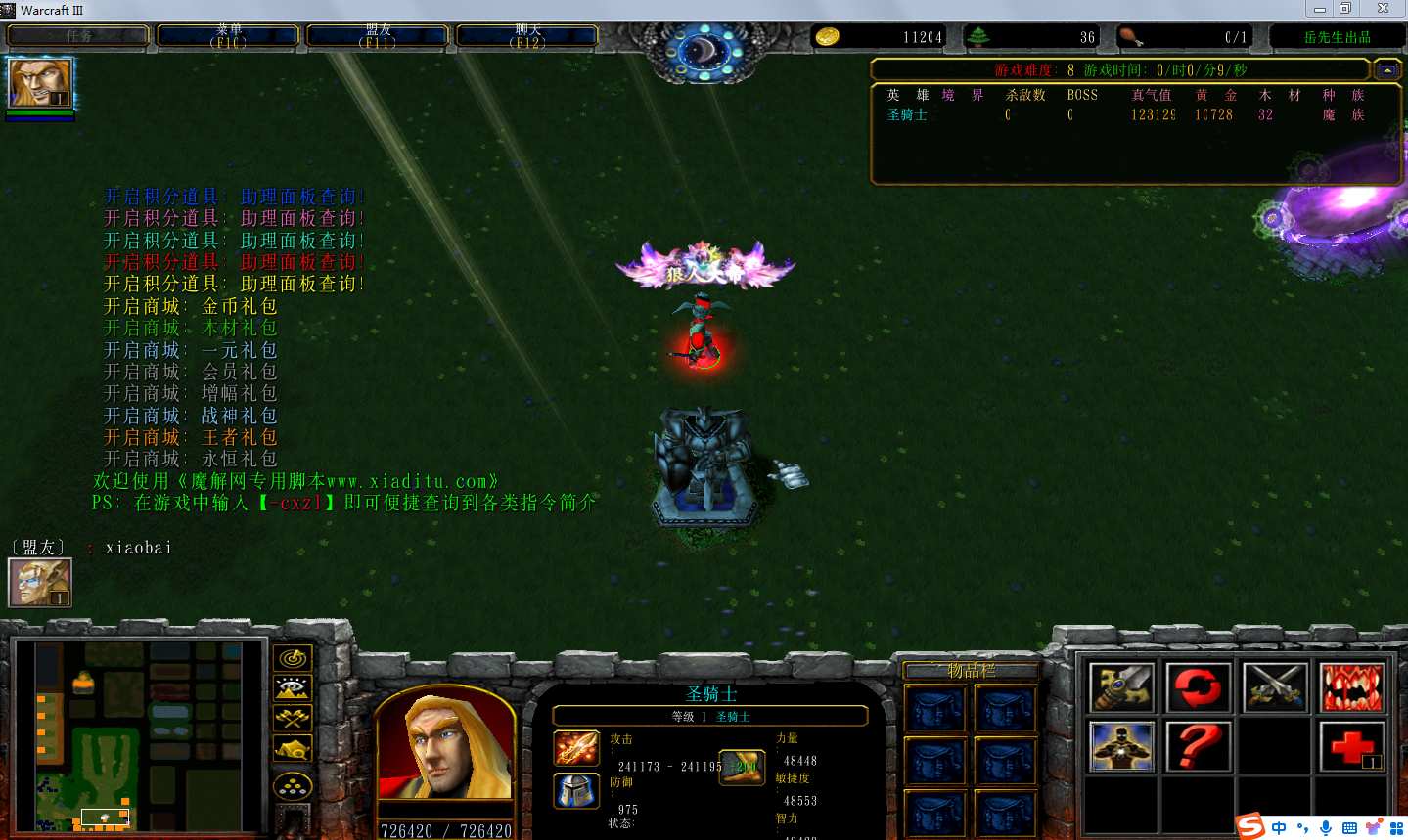 | 技能菜单【光环类技能】 | 自动化菜单【自动加钱木,提升英雄三围】 |