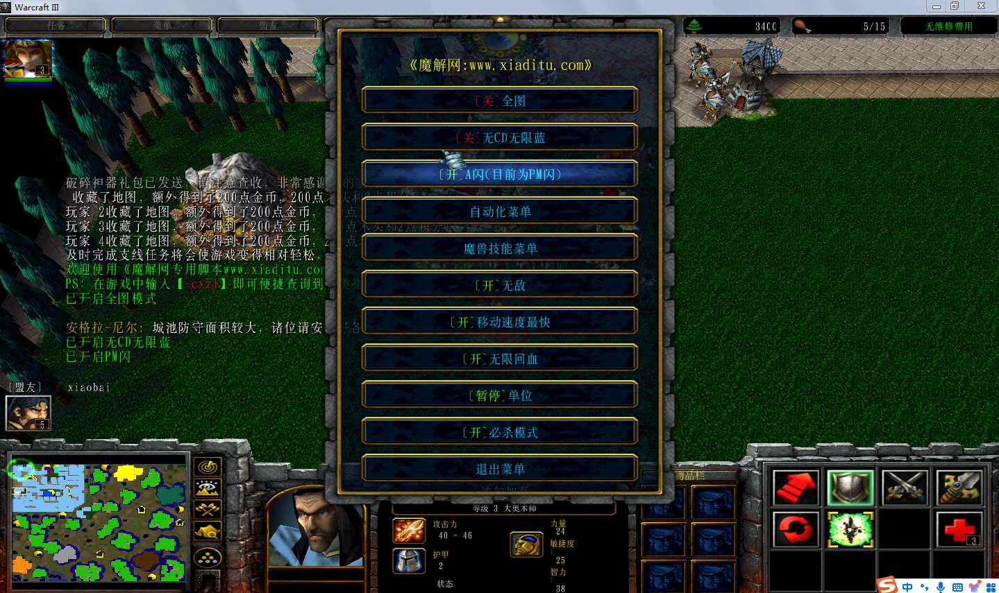 | 技能菜单【光环类技能】 | 自动化菜单【自动加钱木,提升英雄三围】 |