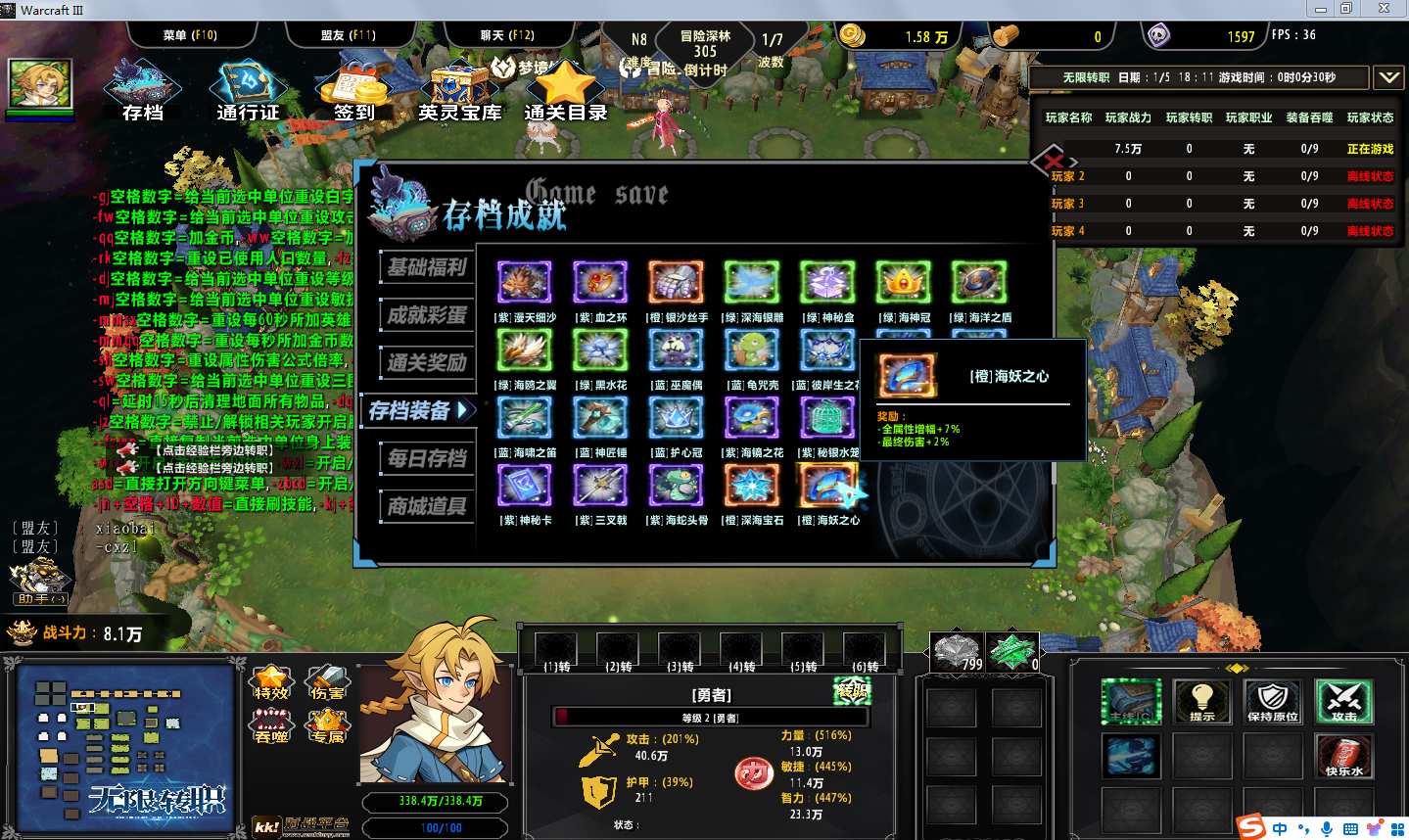 地图名字:无限转职1.0.27地图下载+全商城特权+全存档+无CD+指令功能