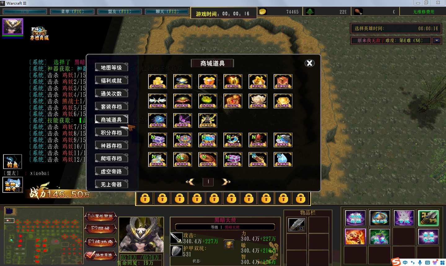 | 技能菜单【光环类技能】 | 自动化菜单【自动加钱木,提升英雄三围】 |