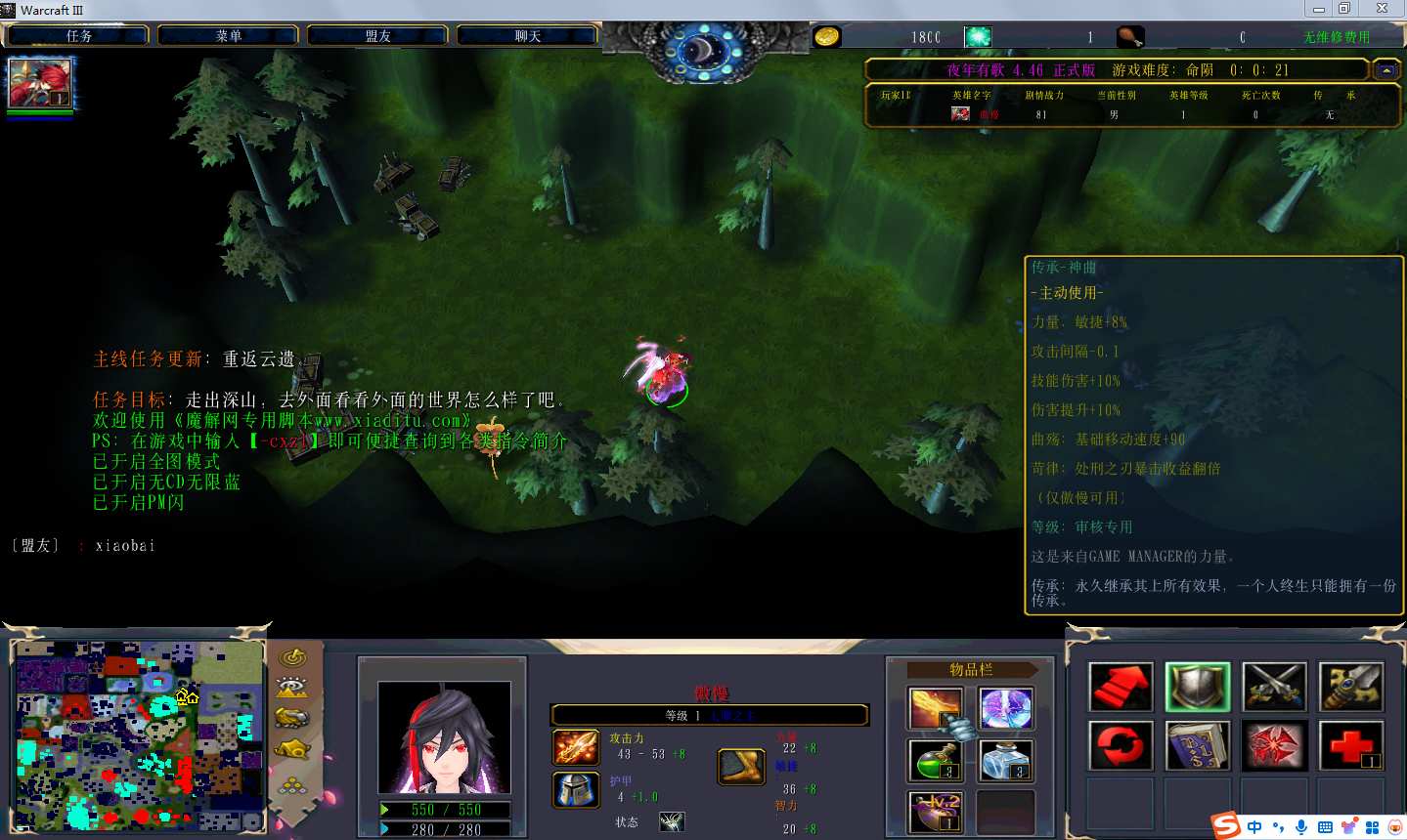 地图名字:夜年有歌4.4.6地图下载+全商城特权+全存档+隐藏英雄+无CD+指令功能