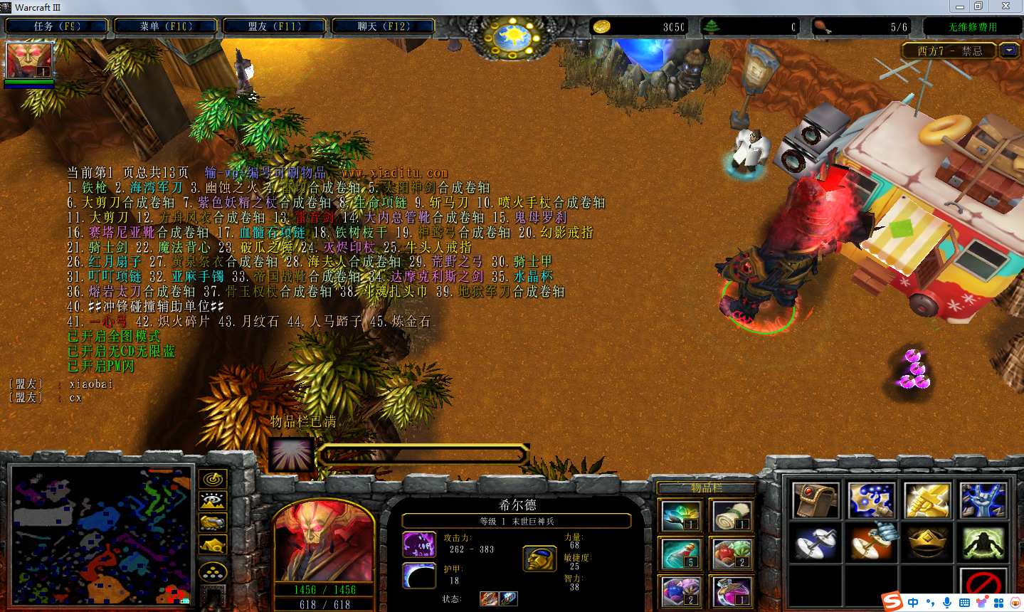 地图名字:西方世界的劫难7 1.8.2地图下载+全商城特权+全存档+隐藏英雄+无CD+指令功能