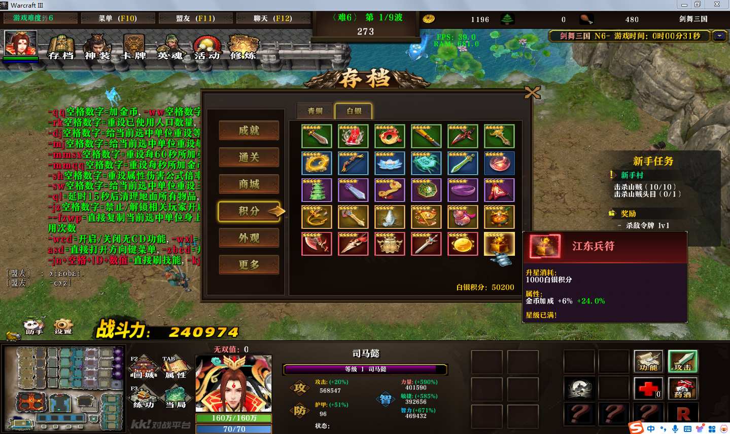 地图名字:剑舞三国1.0.47地图下载+全商城特权+全存档+隐藏英雄+无CD+指令功能