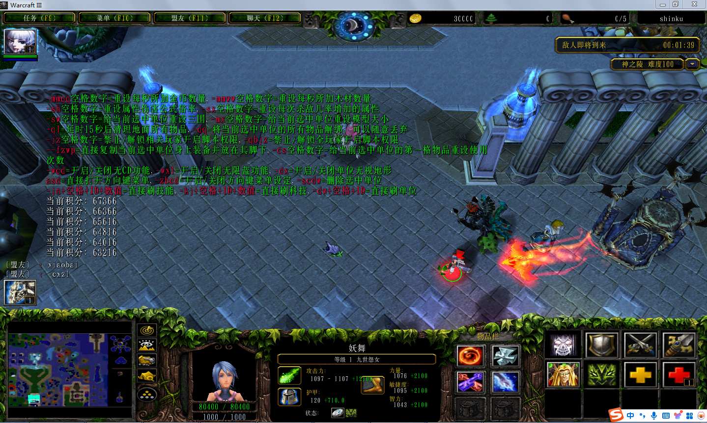 地图名字:神之陵2.2.3地图下载+全商城特权+全存档+隐藏英雄+无CD+指令功能