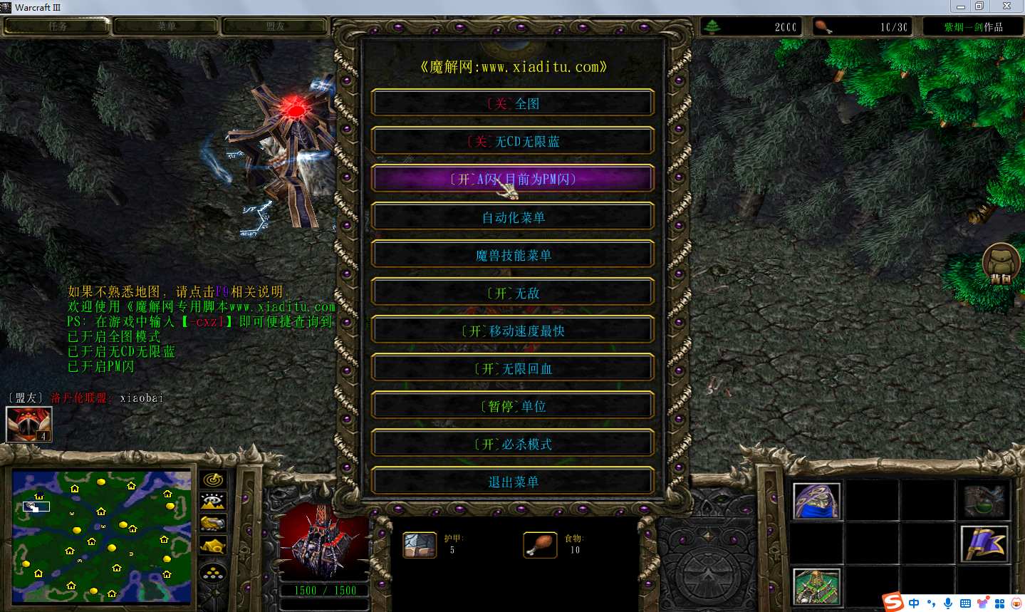 | 技能菜单【光环类技能】 | 自动化菜单【自动加钱木,提升英雄三围】 |