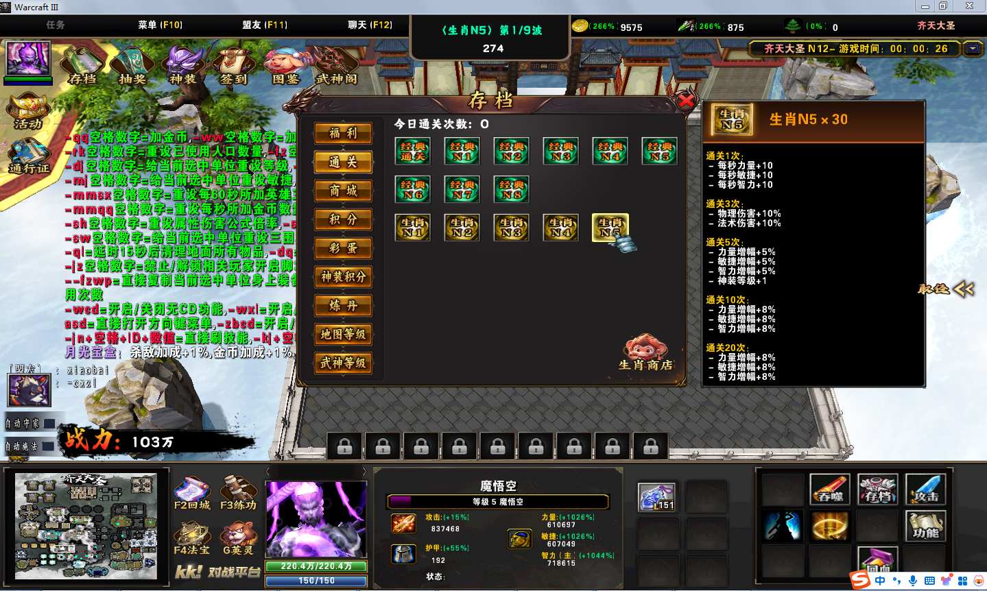 地图名字:齐天大圣1.0.55地图下载+全商城特权+全存档+隐藏英雄+无CD+指令功能