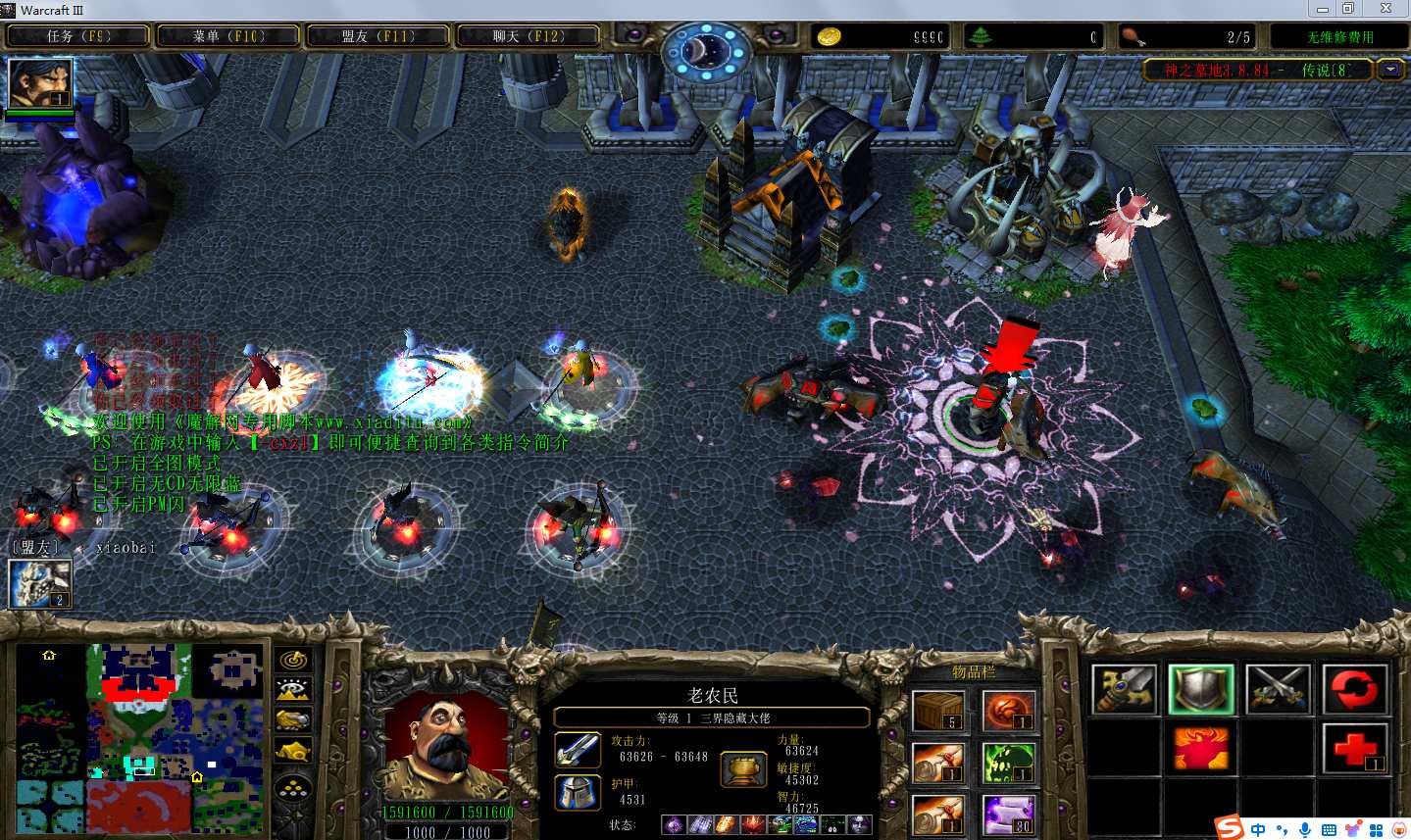 地图名字:神之墓地高清版3.8.84地图下载+全商城特权+全存档+隐藏英雄+无CD+指令功能