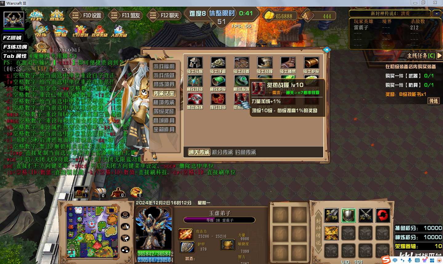 地图名字:新封神传说4洪荒1.0.17地图下载+全商城特权+全存档+隐藏英雄+无CD+指令功能