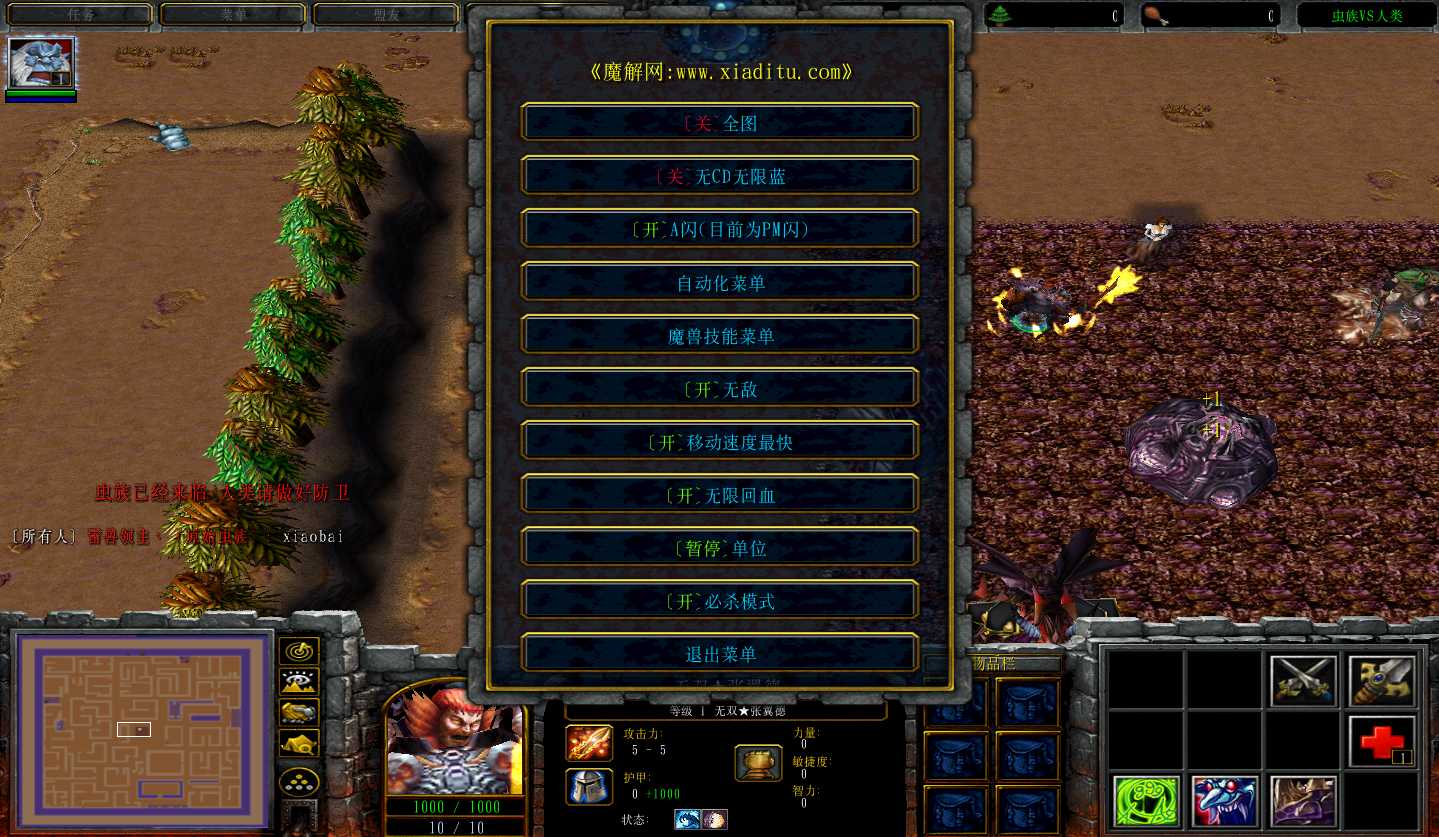| 开启/关闭 移动速度最快 | 开启/关闭 无限回血 |