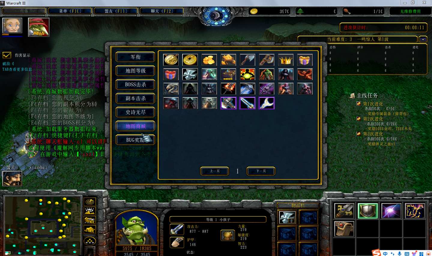 地图名字:男人无限进化3 1.0.16地图下载+全商城特权+全存档+隐藏英雄+无CD+指令功能