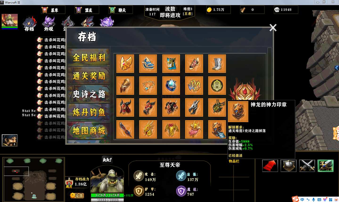 地图名字:一起来杀鸡1.2.8地图下载+全商城特权+全存档+无CD+指令功能