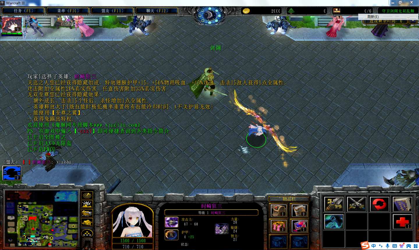 地图名字:守卫剑阁无双乱舞3.5017地图下载+全商城+隐藏英雄+无双至尊+无CD+指令功能