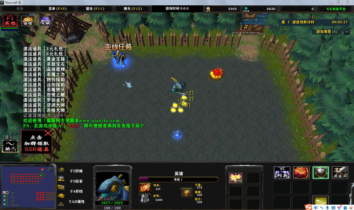 | 技能菜单【光环类技能】 | 自动化菜单【自动加钱木,提升英雄三围】 |