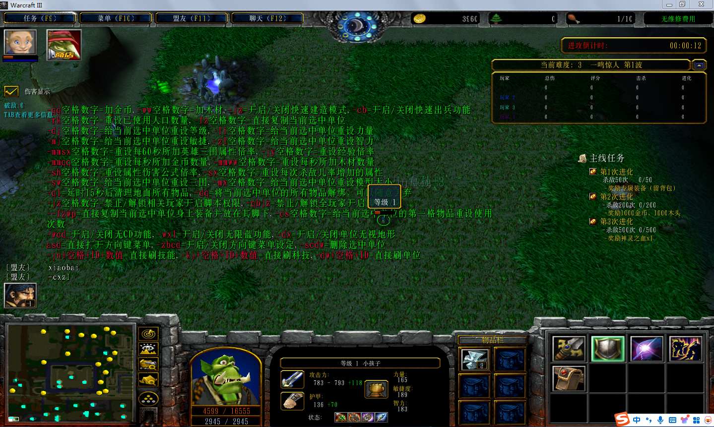 | 技能菜单【光环类技能】 | 自动化菜单【自动加钱木,提升英雄三围】 |