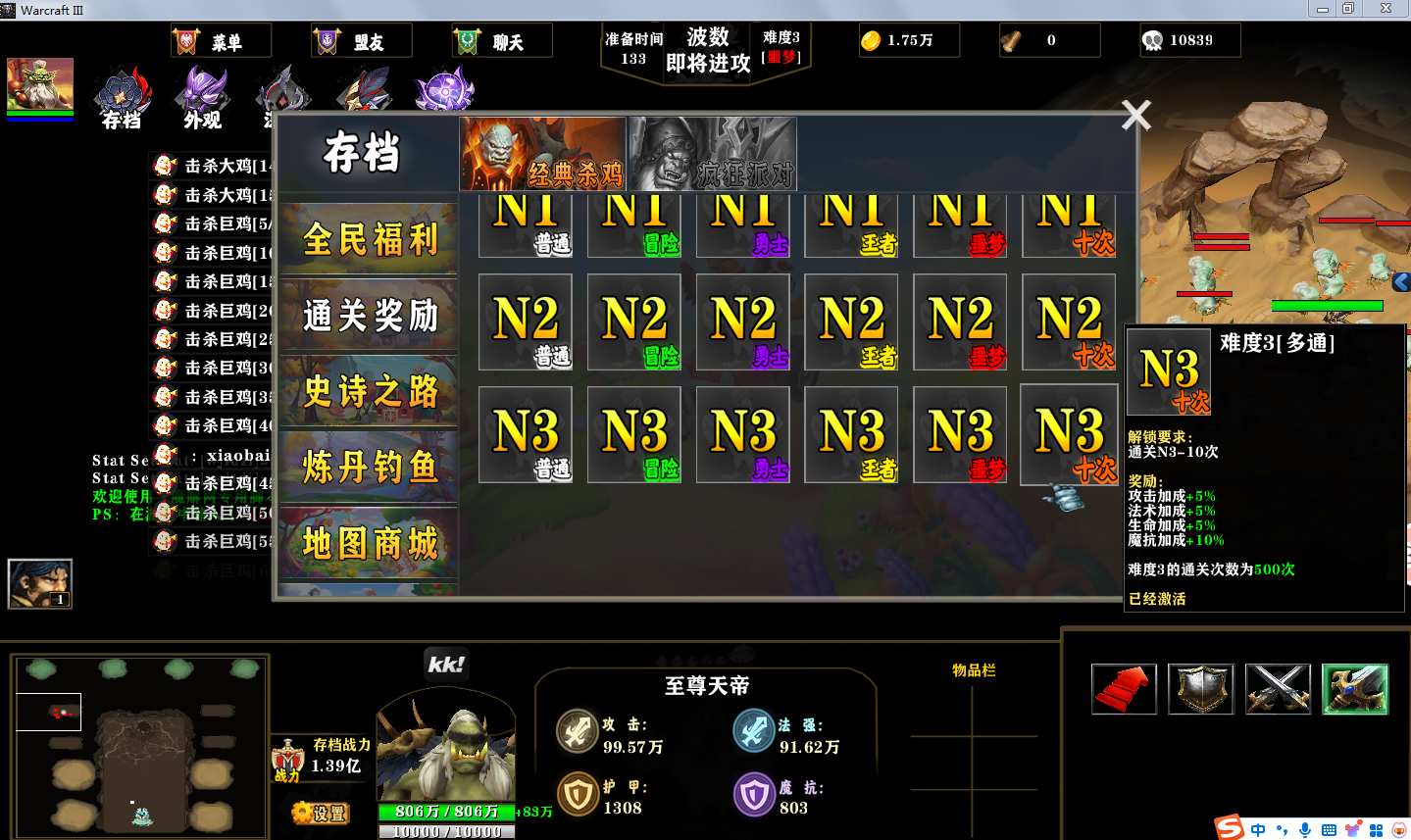 地图名字:一起来杀鸡1.2.9地图下载+全商城特权+全存档+无CD+指令功能
