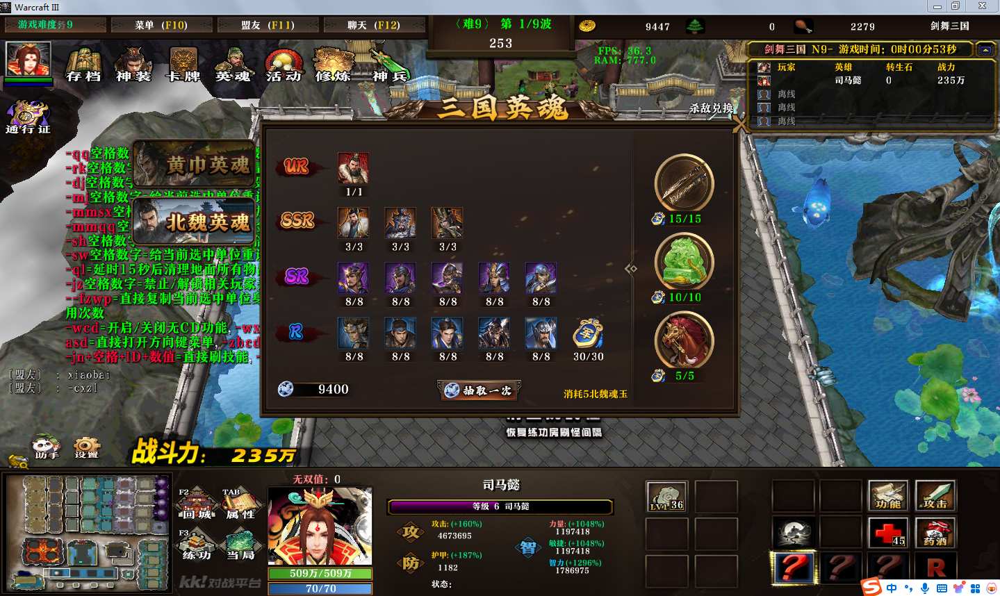 剑舞三国1.0.55地图下载+全商城特权+全存档+隐藏英雄+无CD+指令功能: