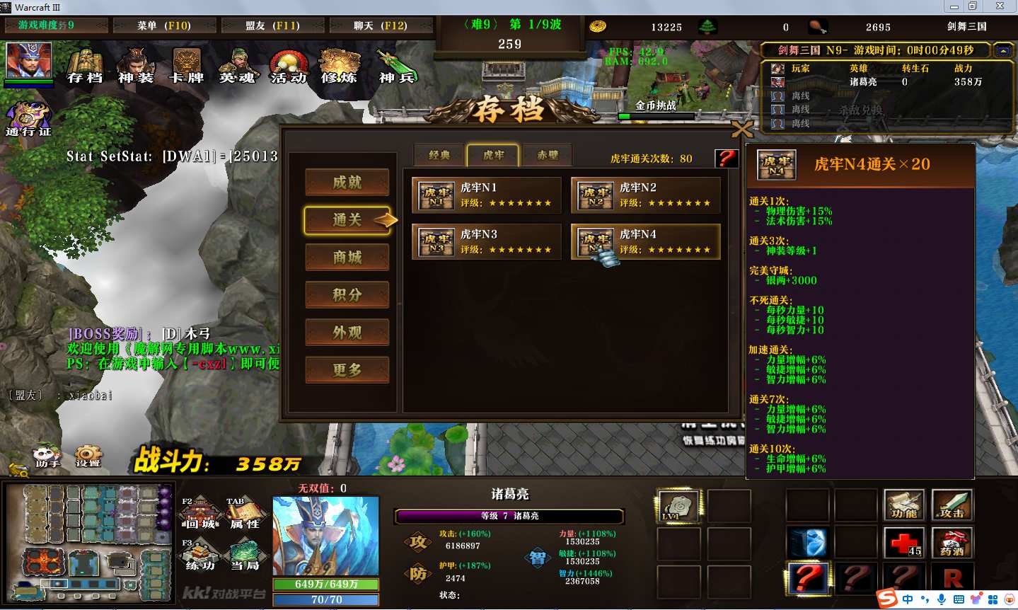 地图名字:剑舞三国1.0.58地图下载+全商城特权+全存档+隐藏英雄+无CD+指令功能