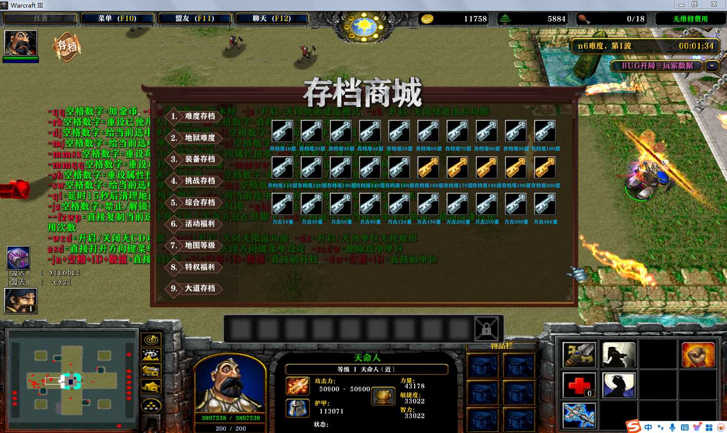 地图名字:BUG开局1.2.104地图下载+全商城特权+全存档+无CD+指令功能