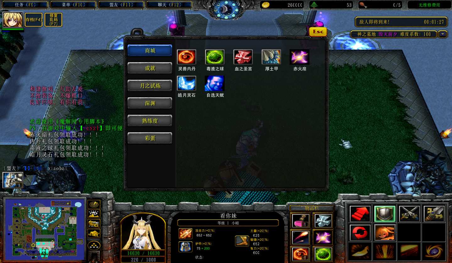 地图名字:神之墓地2.9.49地图下载+全商城特权+全存档+隐藏英雄+无CD+指令功能
