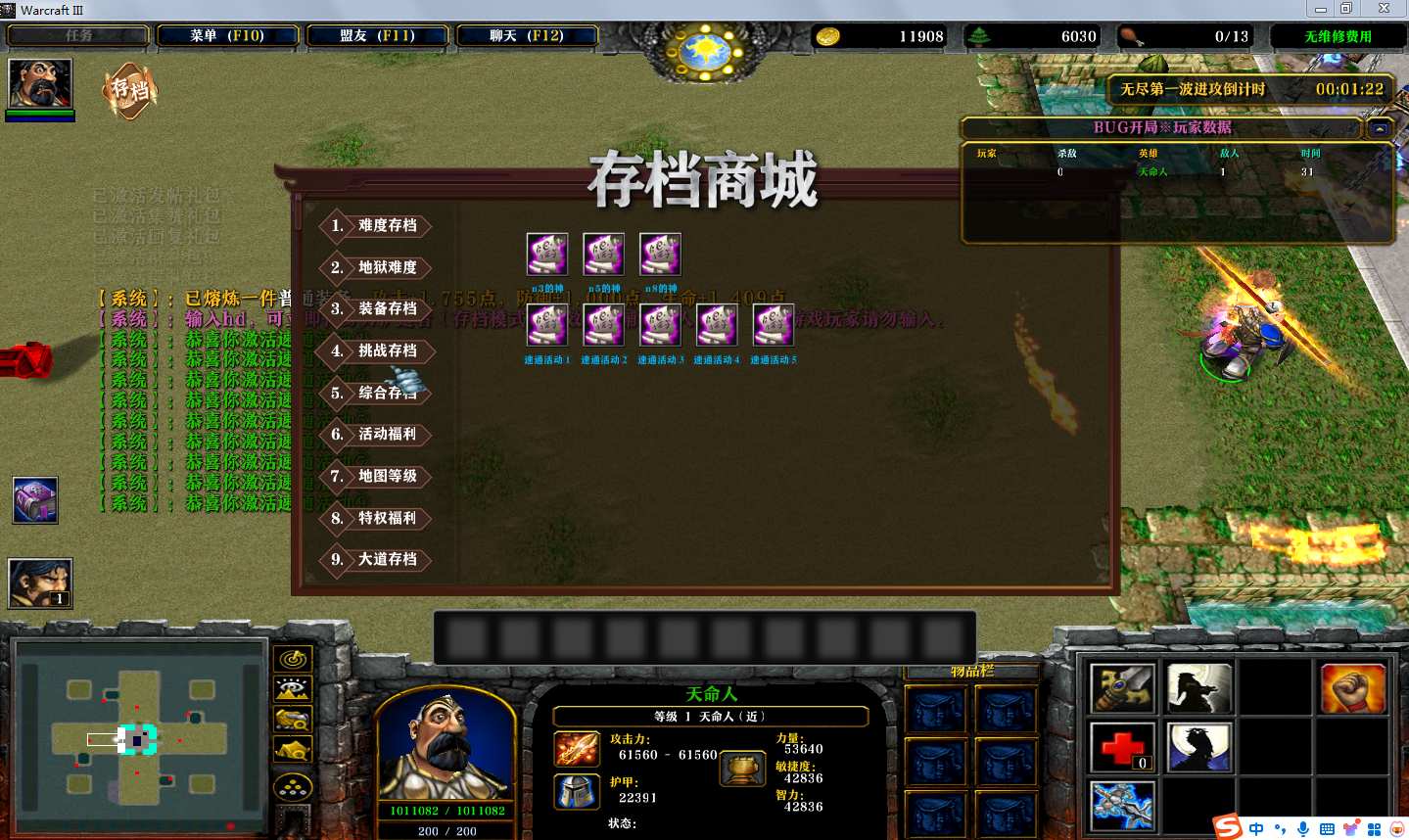 地图名字:BUG开局1.2.112地图下载+全商城特权+全存档+无CD+指令功能
