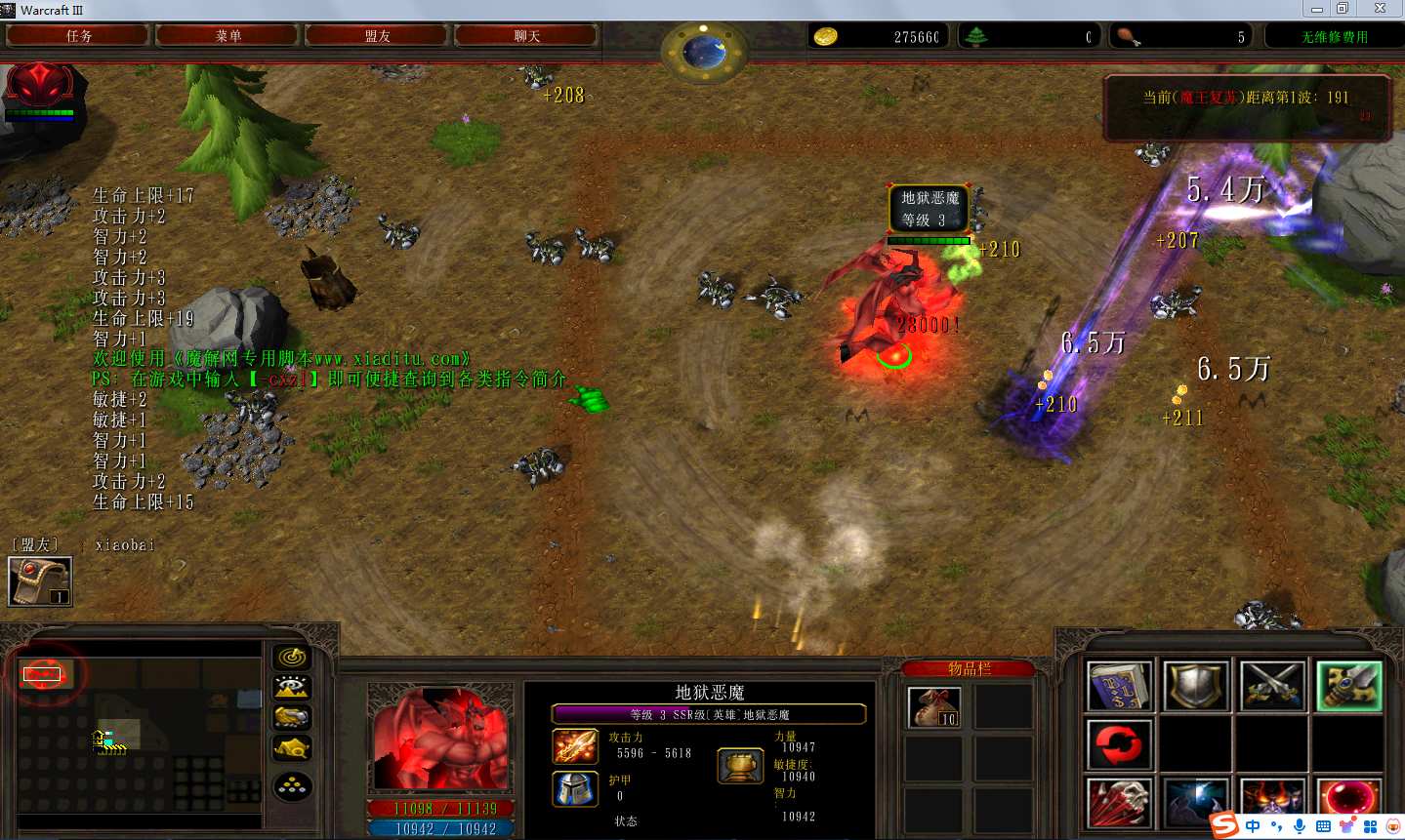 | 技能菜单【光环类技能】 | 自动化菜单【自动加钱木,提升英雄三围】 |