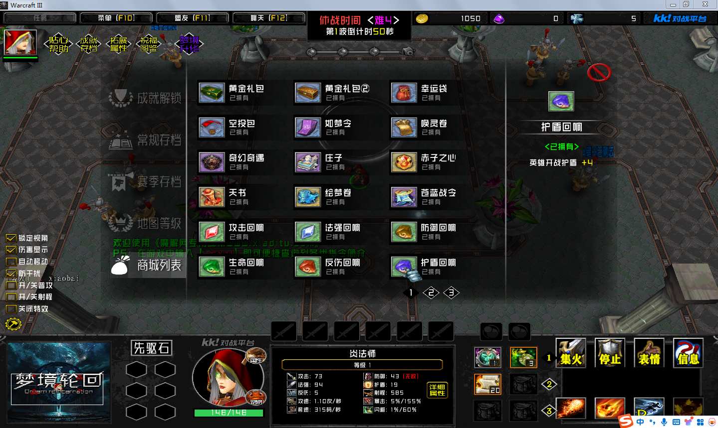 | 技能菜单【光环类技能】 | 自动化菜单【自动加钱木,提升英雄三围】 |
