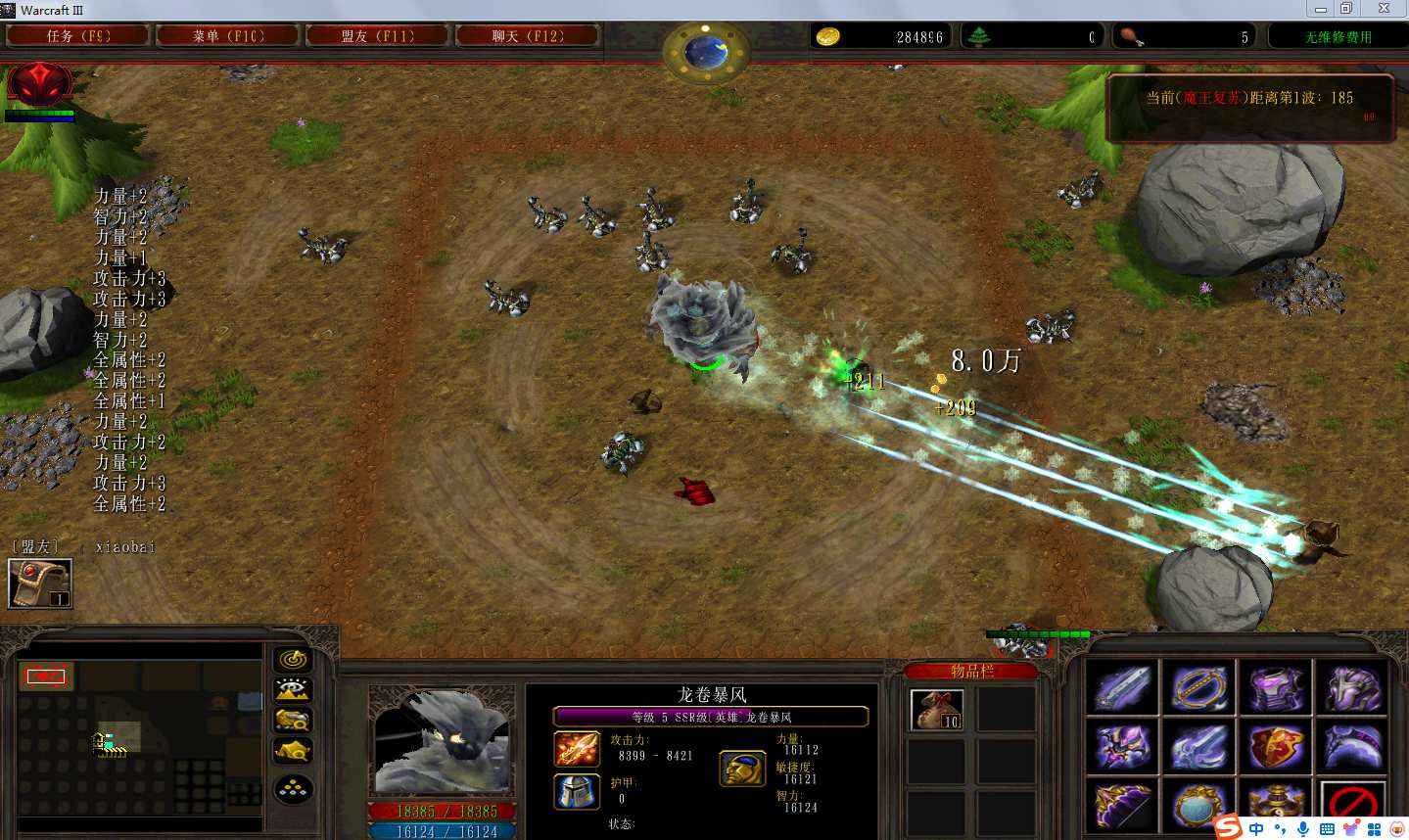 | 技能菜单【光环类技能】 | 自动化菜单【自动加钱木,提升英雄三围】 |