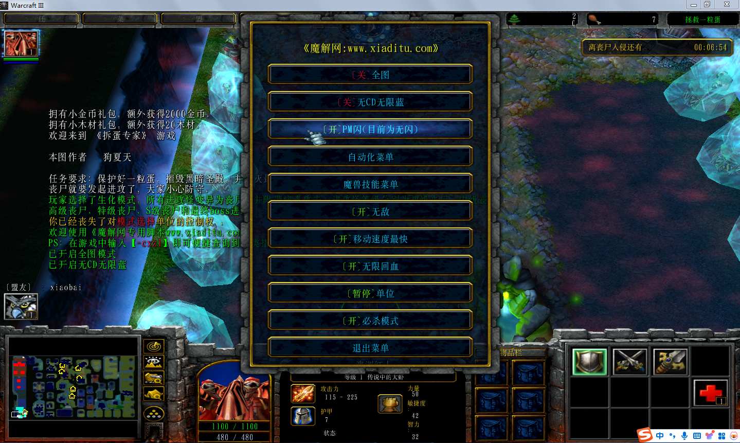 | 技能菜单【光环类技能】 | 自动化菜单【自动加钱木,提升英雄三围】 |