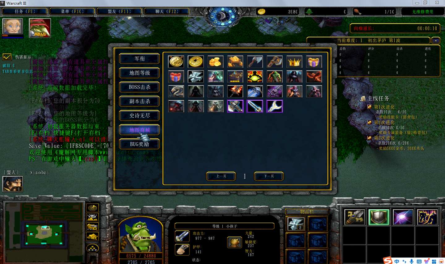 | 技能菜单【光环类技能】 | 自动化菜单【自动加钱木,提升英雄三围】 |