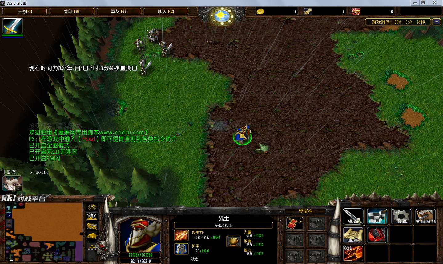 | 技能菜单【光环类技能】 | 自动化菜单【自动加钱木,提升英雄三围】 |