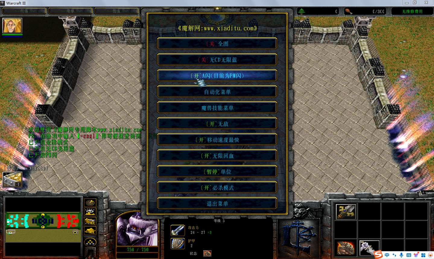 | 技能菜单【光环类技能】 | 自动化菜单【自动加钱木,提升英雄三围】 |