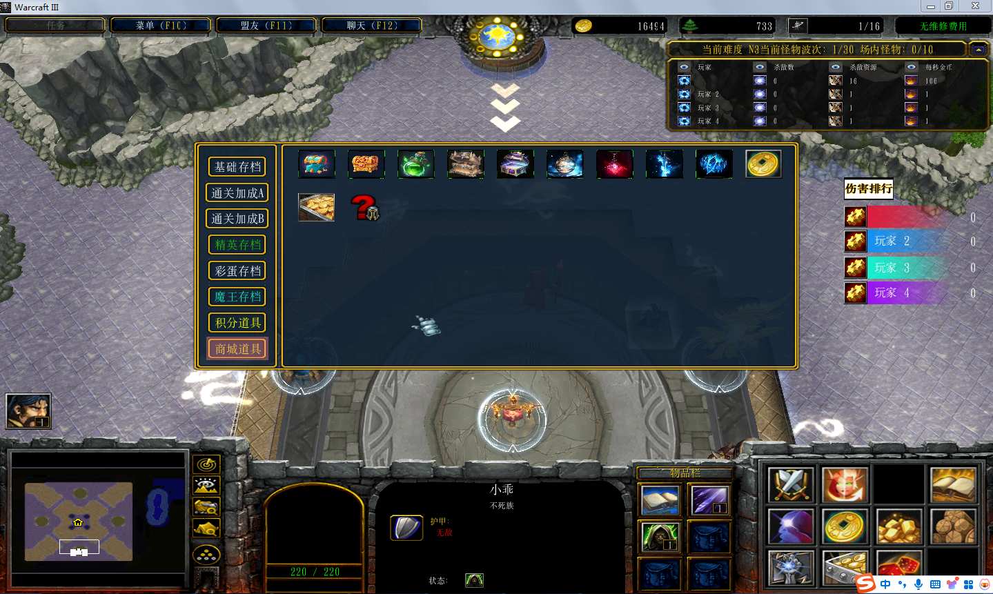 | 技能菜单【光环类技能】 | 自动化菜单【自动加钱木,提升英雄三围】 |