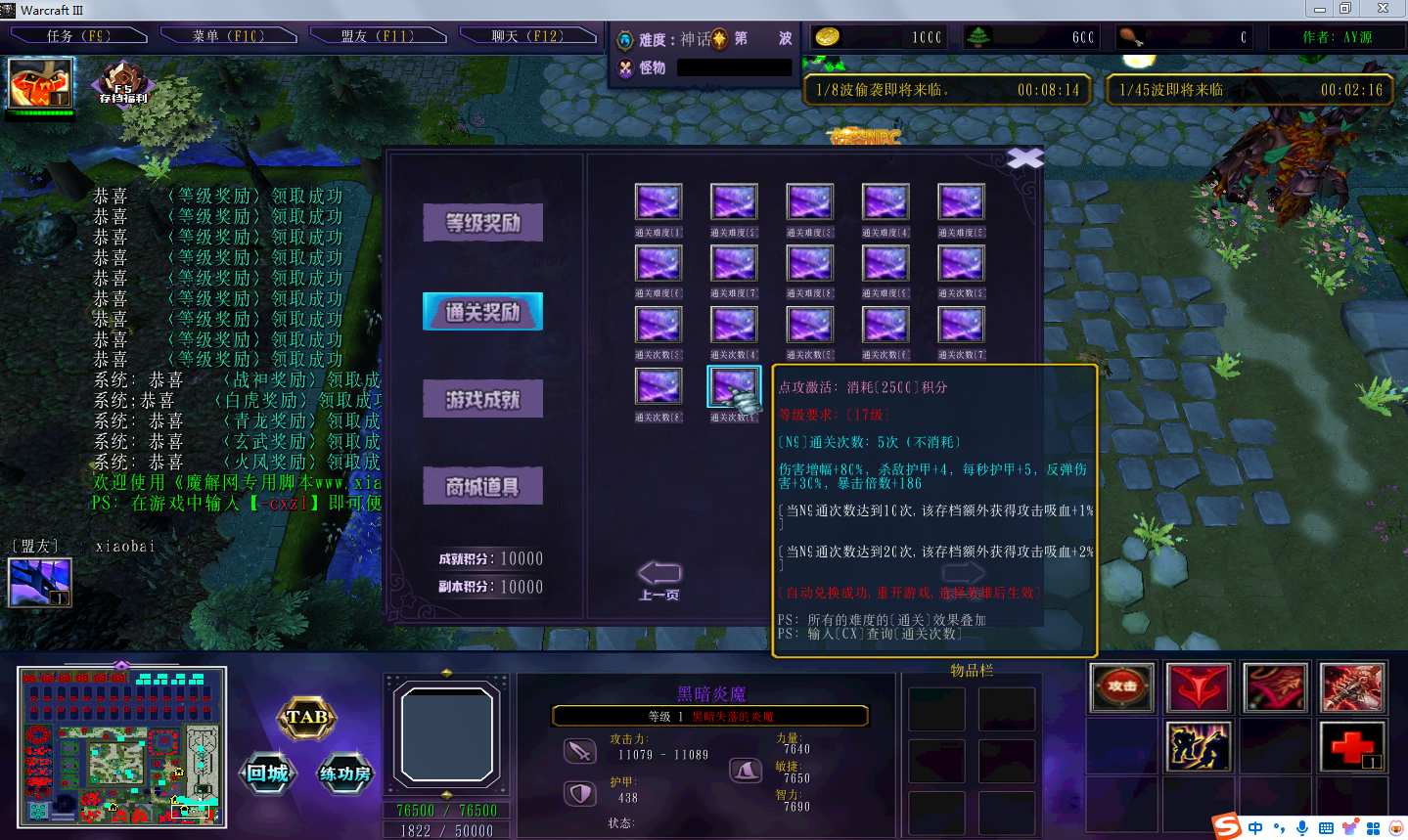 地图名字:邪恶源头二-1.0.17地图下载+全商城特权+全存档+隐藏英雄+无CD+指令功能