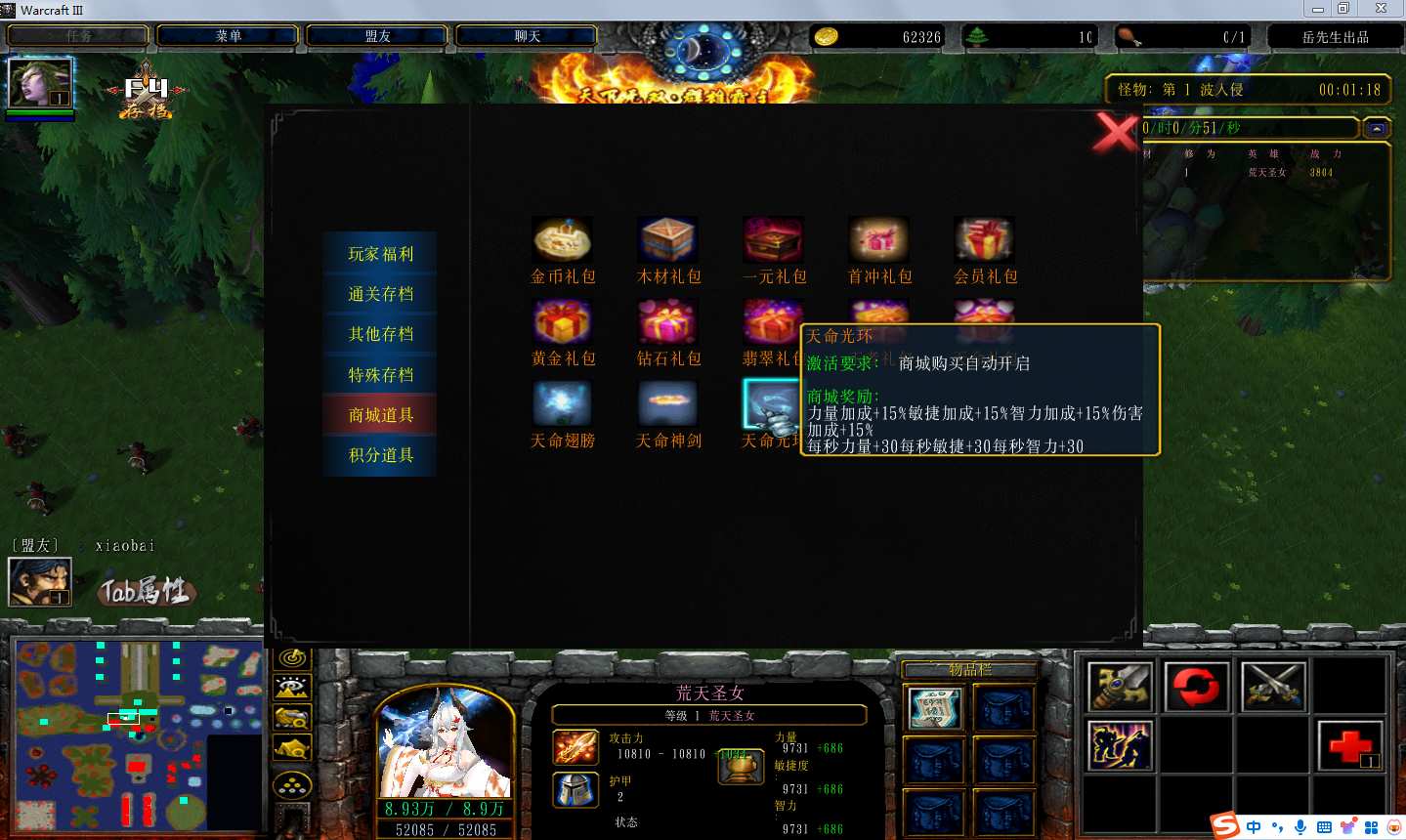 | 技能菜单【光环类技能】 | 自动化菜单【自动加钱木,提升英雄三围】 |