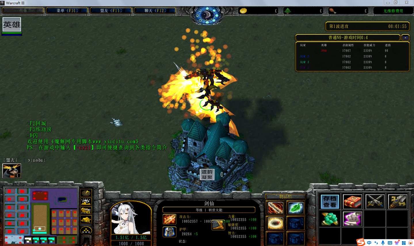 | 技能菜单【光环类技能】 | 自动化菜单【自动加钱木,提升英雄三围】 |