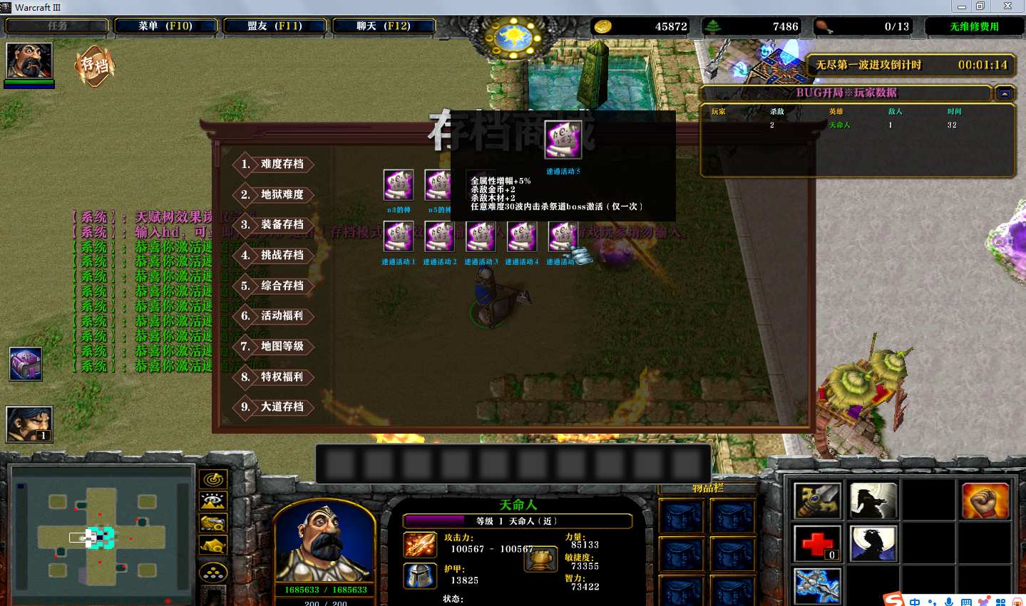地图名字:BUG开局1.2.123地图下载+全商城特权+全存档+无CD+指令功能