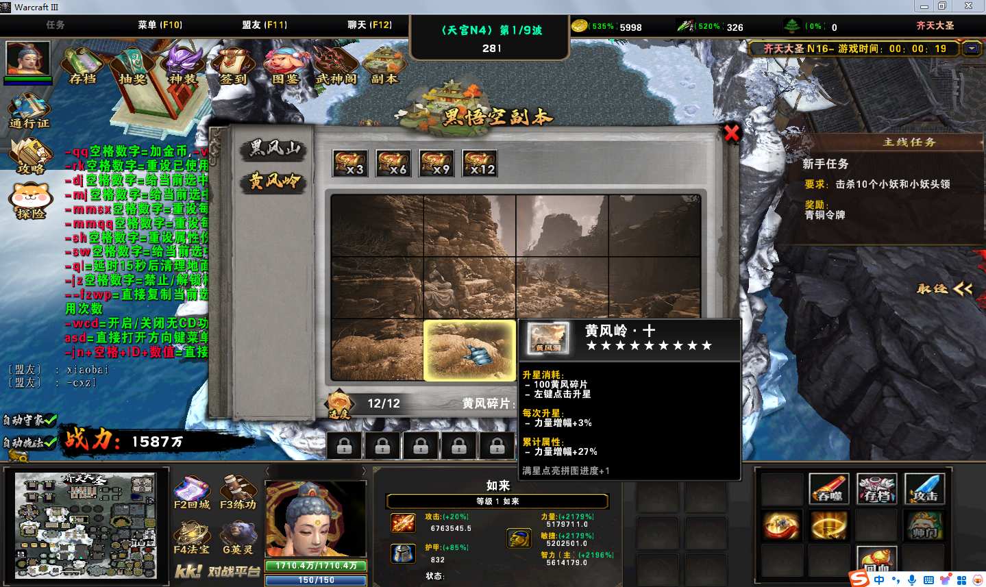 地图名字:齐天大圣1.0.86地图下载+全商城特权+全存档+隐藏英雄+无CD+指令功能