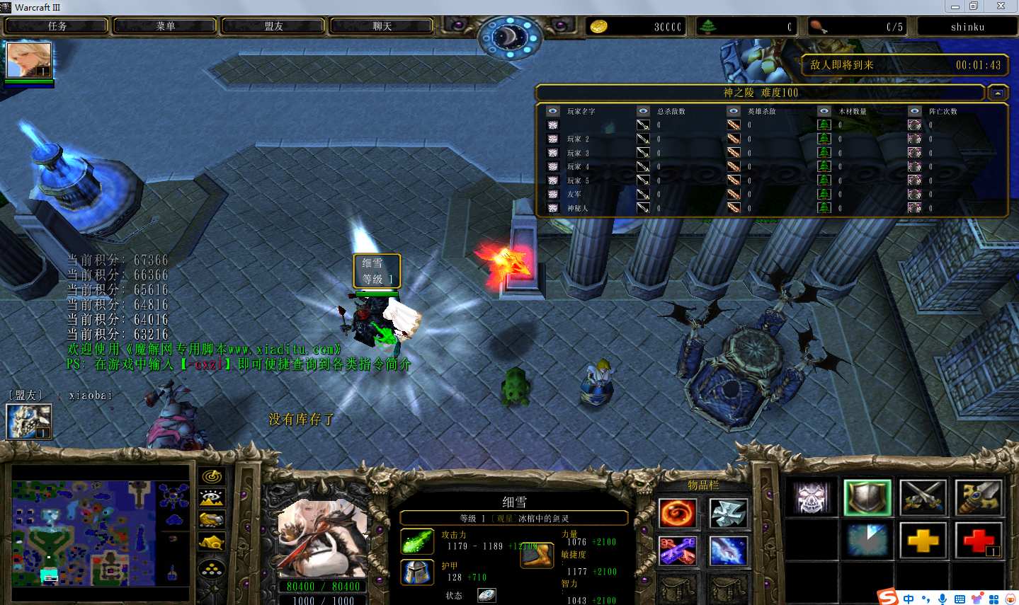 地图名字:神之陵2.2.6地图下载+全商城特权+全存档+隐藏英雄+无CD+指令功能