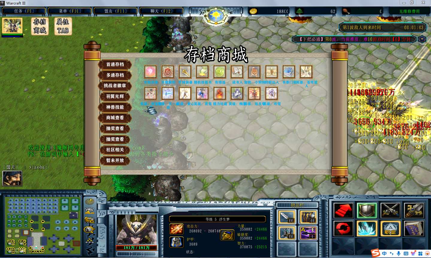 | 技能菜单【光环类技能】 | 自动化菜单【自动加钱木,提升英雄三围】 |